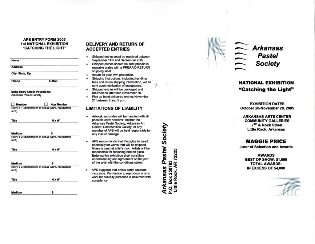 1st National Show – Catching the Light October 20, 2005 – November 20. 2005 Prospectus Catalogue for Show